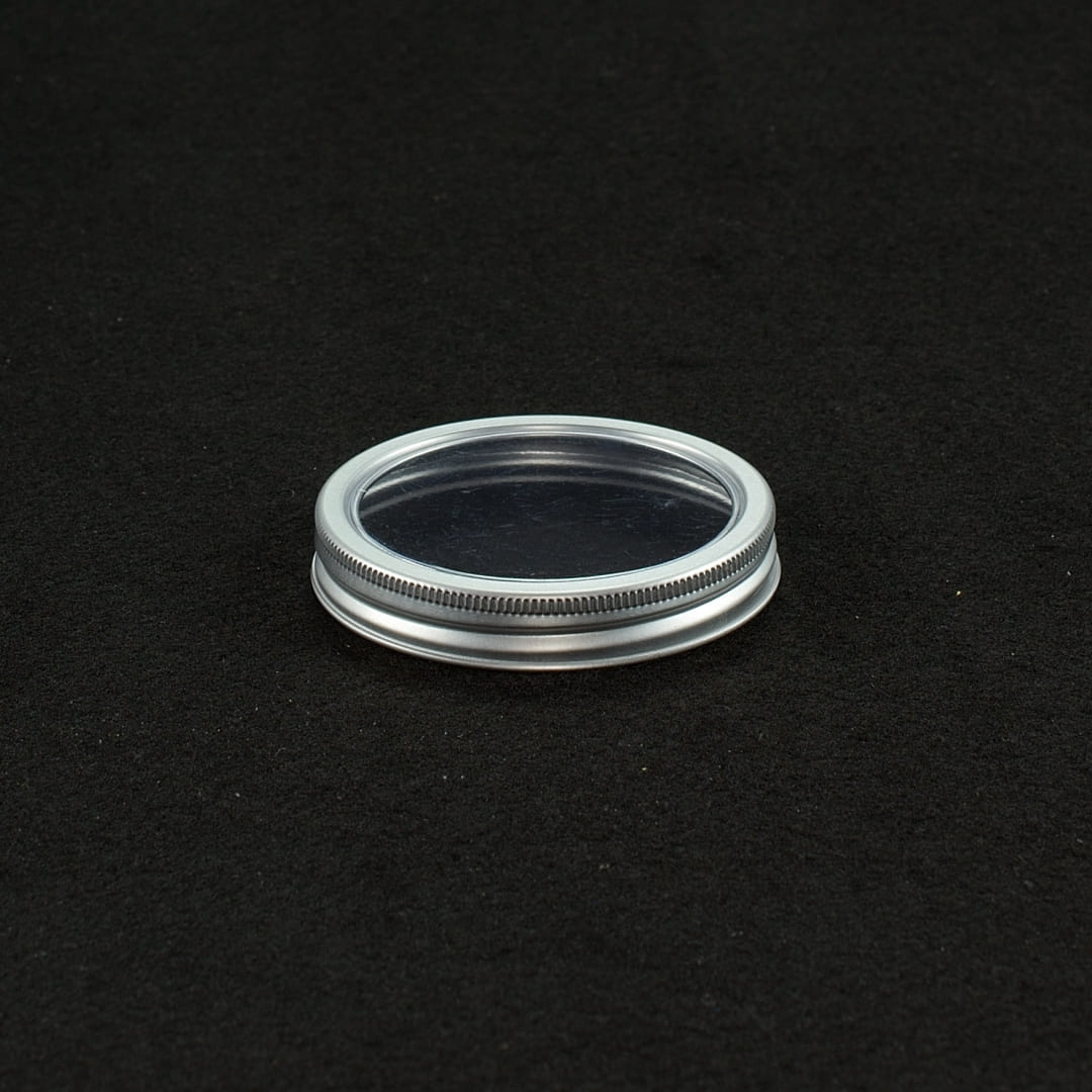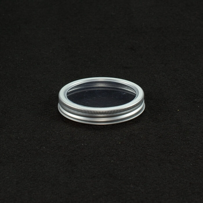 Silver aluminium screw cap with diameter 70mm with window, compatible with the CLASSIC PET line.