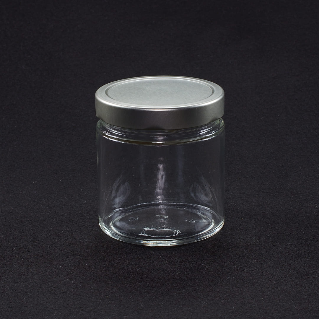 Vaso in vetro trasparente da 410ml, ideale per conserve e tutto ciò che richiede una sterilizzazione o pastorizzazione.